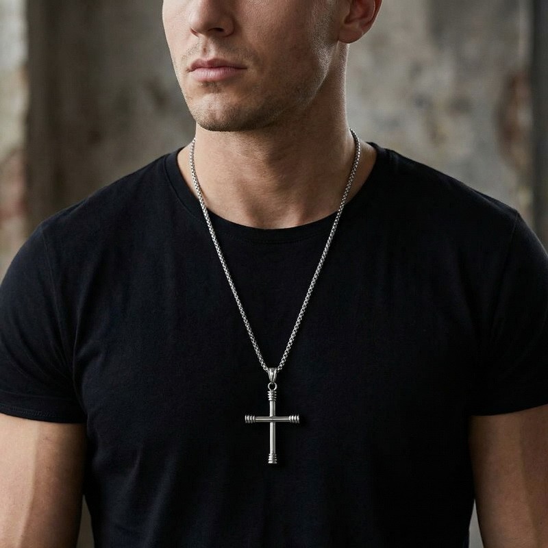 - Stainless steel jewelry cross pendant necklace