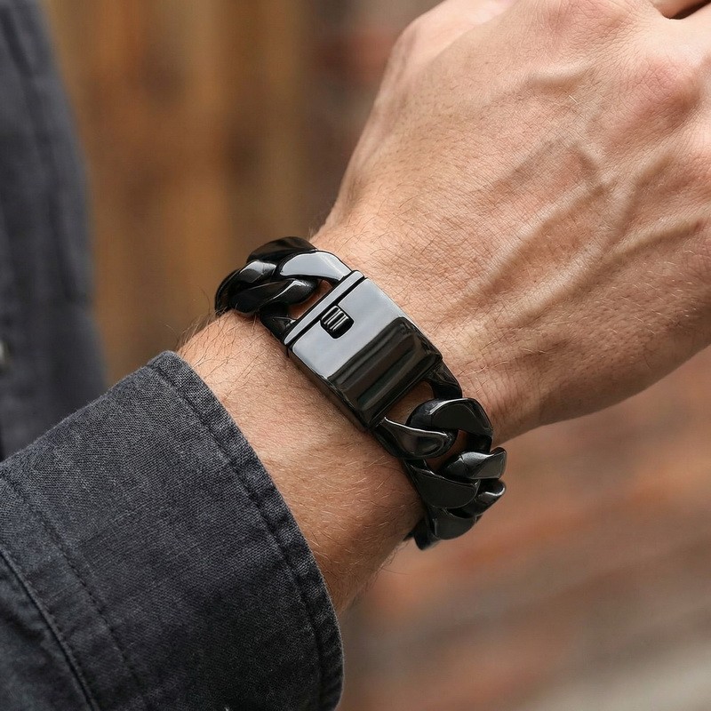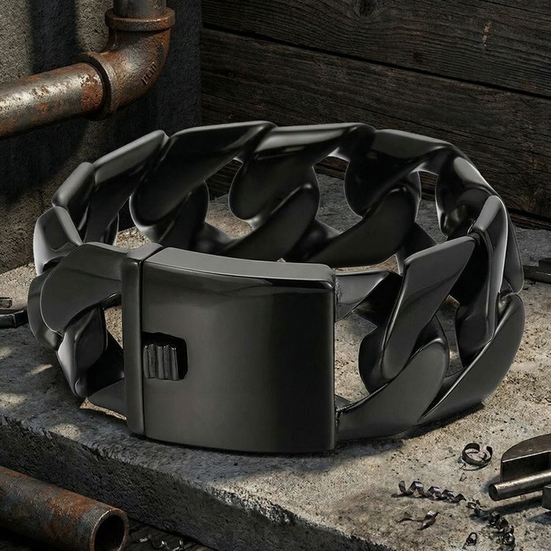 - Fashion vacuum plating black stainless steel men's smooth bracelet