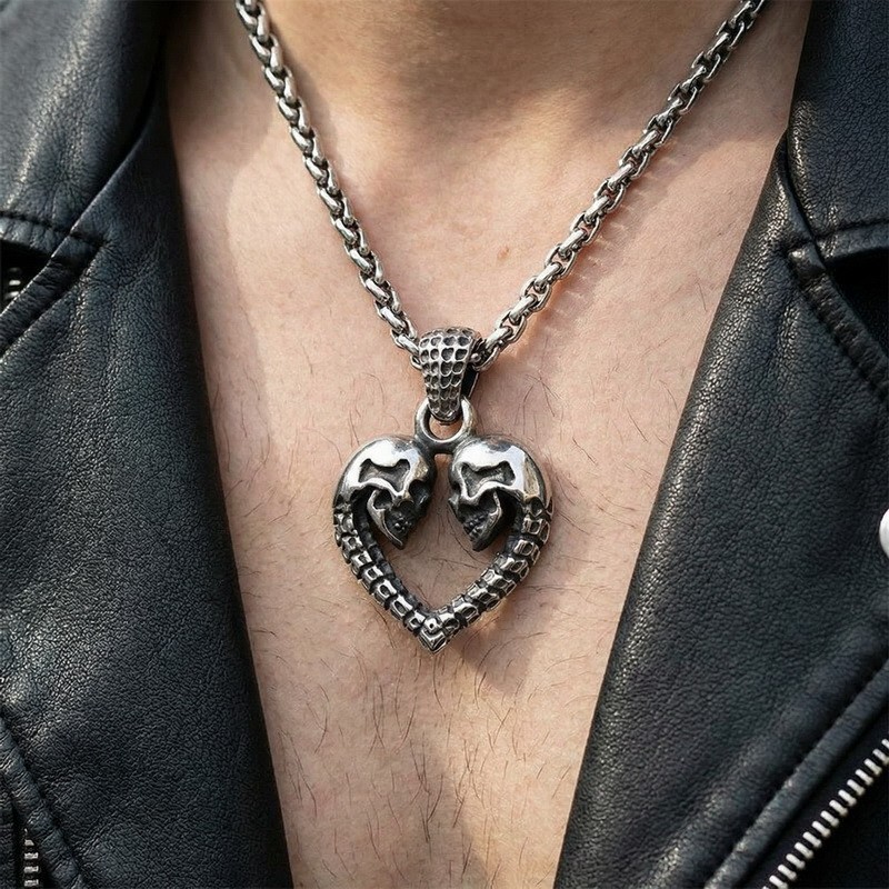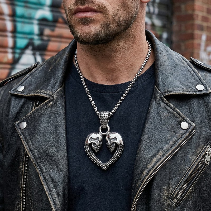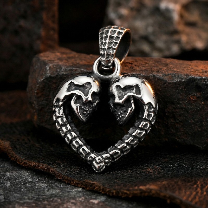 - Punk style creative love skull men's stainless steel pendant
