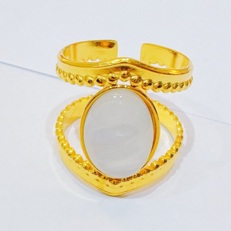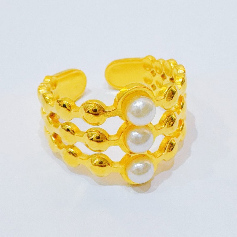 Stainless Steel Minimalist Ins fashion round bead water ripple Gold-plating RingKR49215-KWholesale Price: