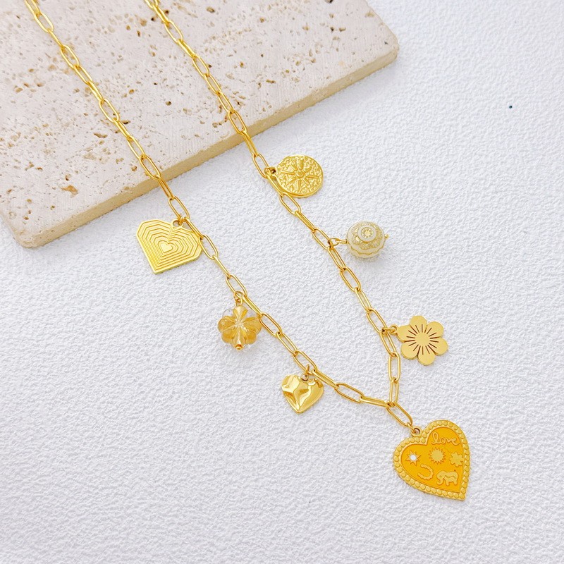 Stainless steel 450X5mm snake chain with swarovski stone heart shape pendant fashional gold necklaceKN233462-KWholesale Price: