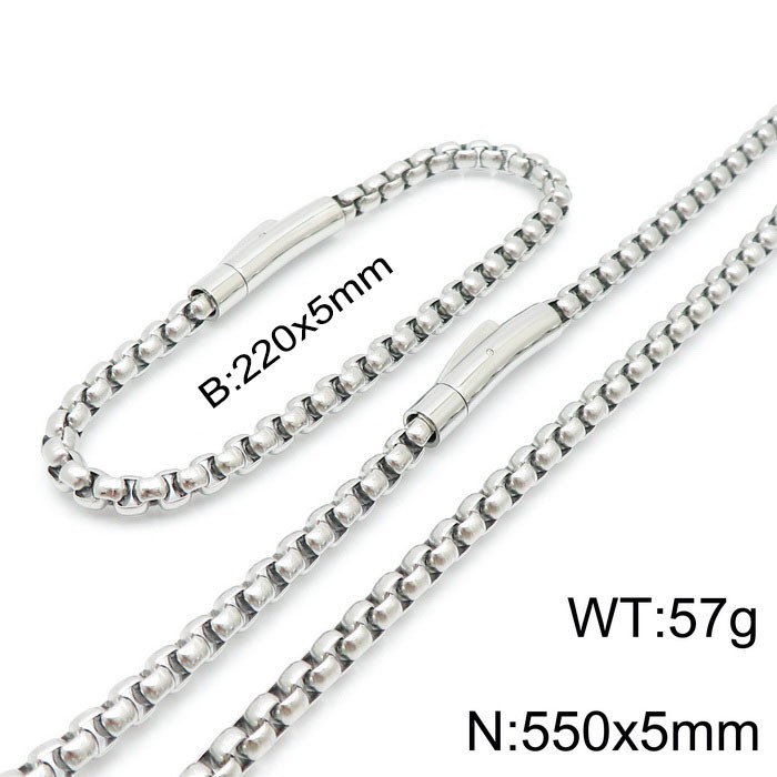 7mm vintage men's personalized cut edge polished whip chain bracelet necklace two-piece setKS204803-ZWholesale Price: U$9.17