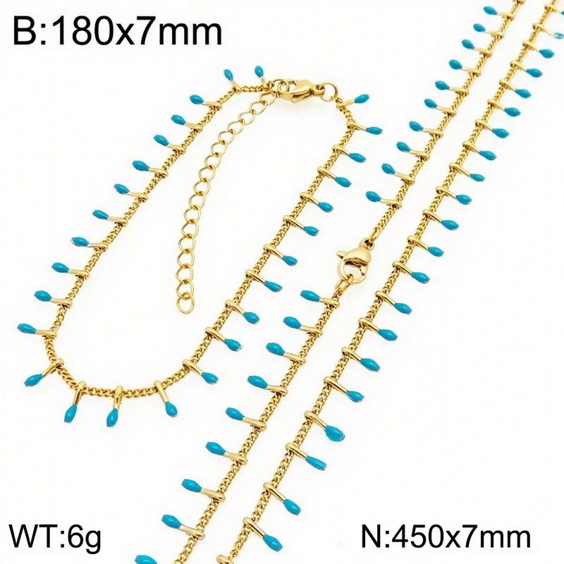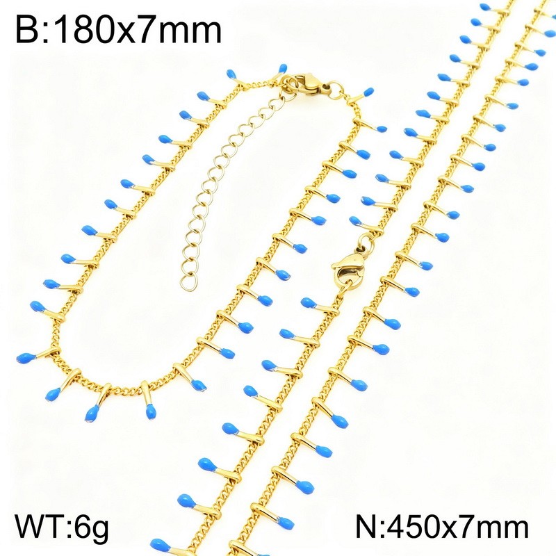 7mm Stainless Steel Fashion Blue Match Bracelet Necklace Two Piece SetKS223888-ZWholesale Price: