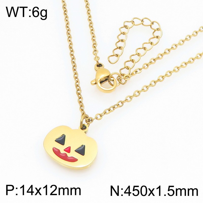 Fashion Halloween Series Stainless Steel Pumpkin Children's Pendant NecklaceKN298696-ZWholesale Price: