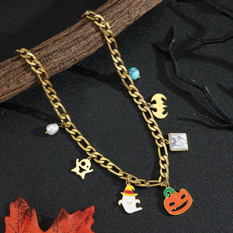Personalized and trendy Halloween series stainless steel pumpkin demon pendant necklaceKN298685-ZWholesale Price: