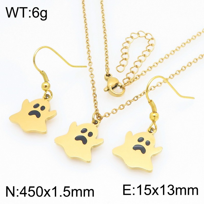 Fashionable and personalized stainless steel Halloween ghost earring necklace two-piece setKS229385-ZWholesale Price: