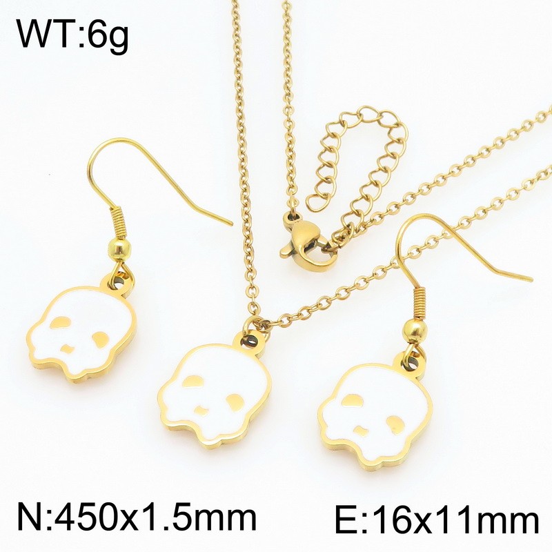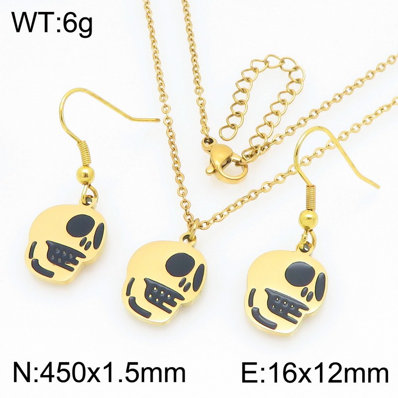 Fashionable and personalized stainless steel Halloween skull earrings necklace two-piece setKS229394-ZWholesale Price: