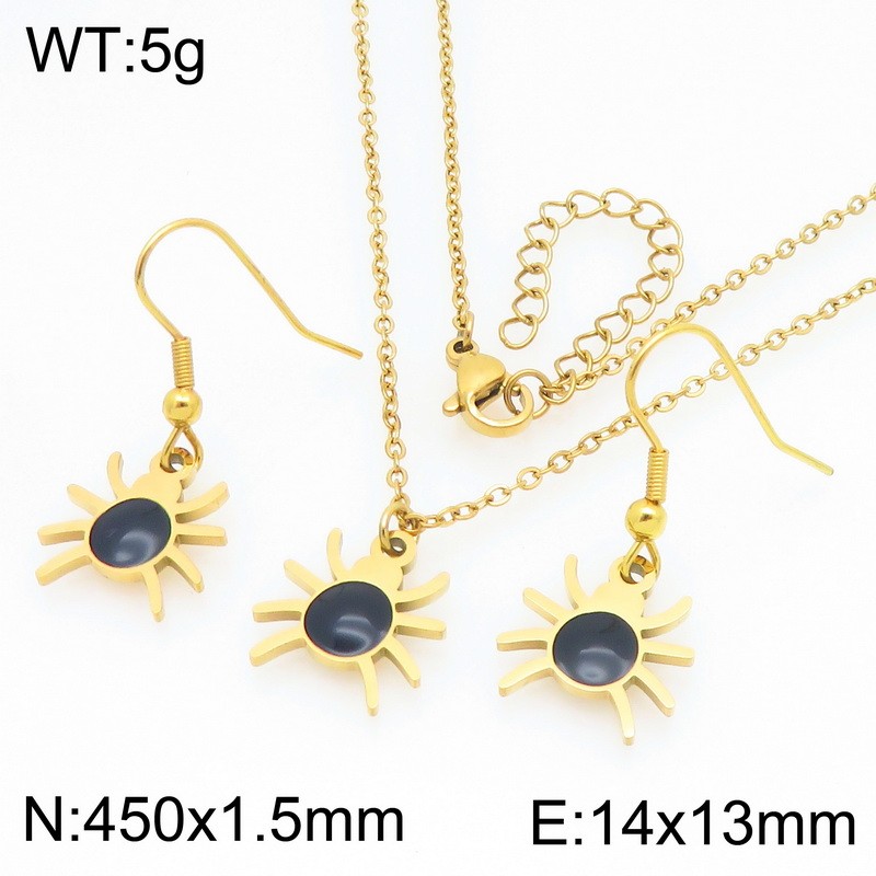 Fashionable and personalized stainless steel black gemstone spider earring necklace two-piece setKS229395-ZWholesale Price: