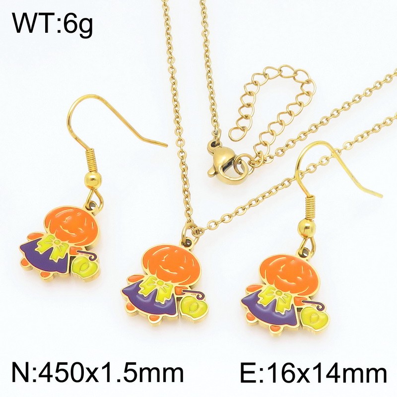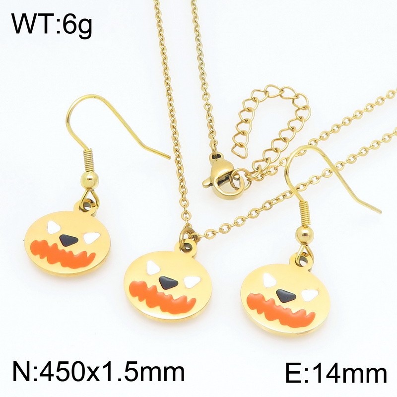 Fashion and Personalized Stainless Steel Halloween Pumpkin Devil Earrings Necklace Two Piece SetKS229400-ZWholesale Price: