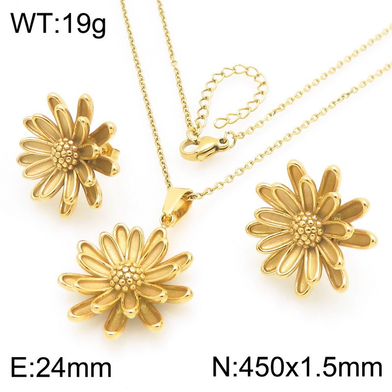 Personalized design stainless steel daisy earrings necklace two-piece setKS226101-ZWholesale Price:
