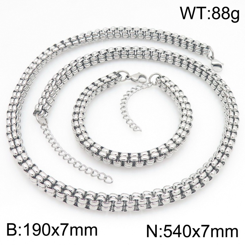 Stainless steel chain bracelet necklace jewelry setKS230235-ZJZLWholesale Price: