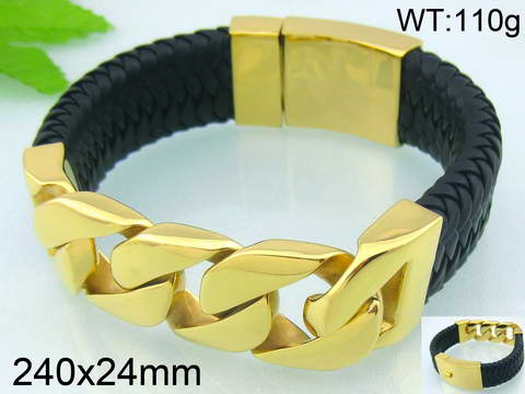 Coarse titanium steel chain leather bracelet Men's knitting cow leather buckle bracelet
