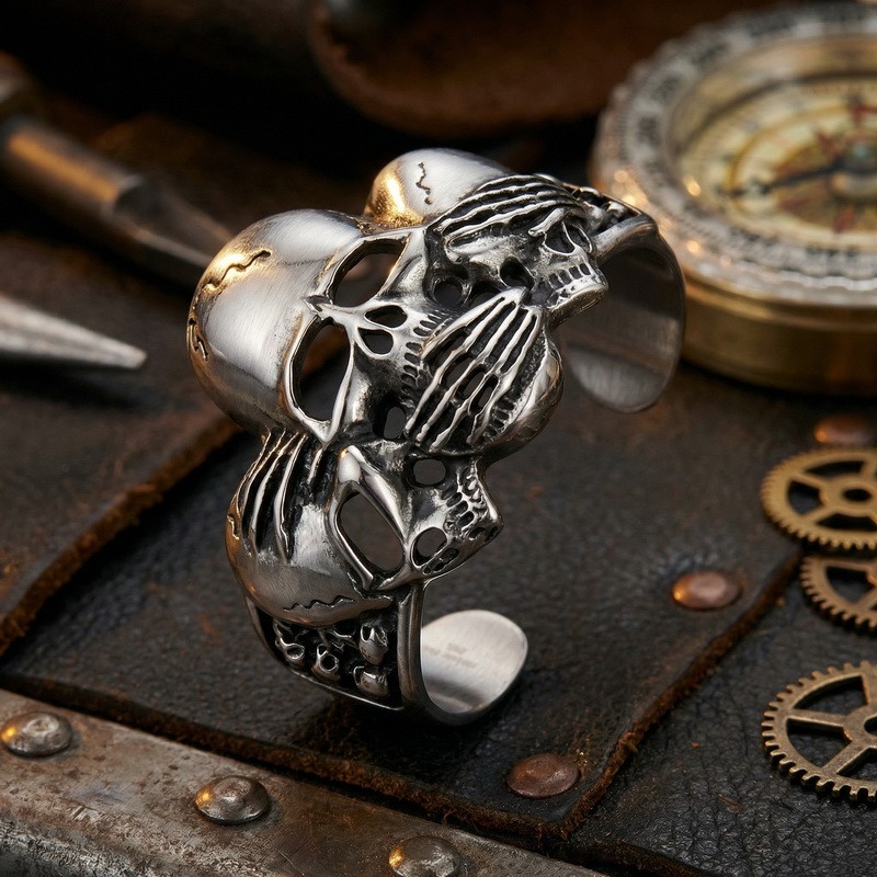 - Skeleton head hollow wide open bracelet Stainless Skull Bangle