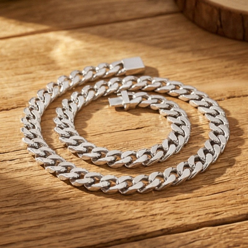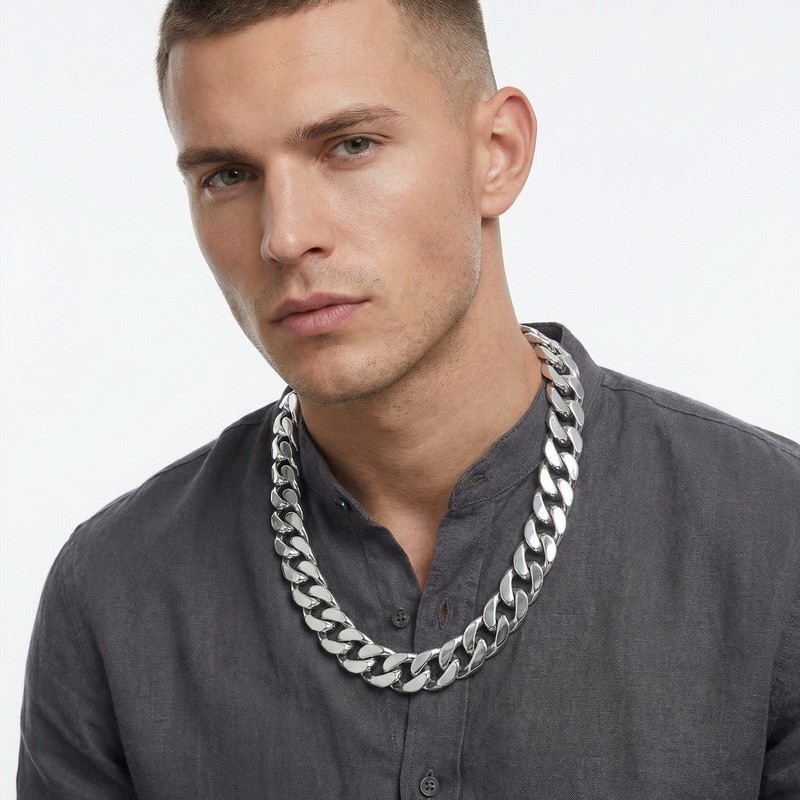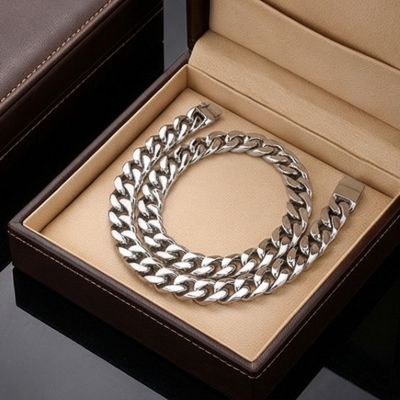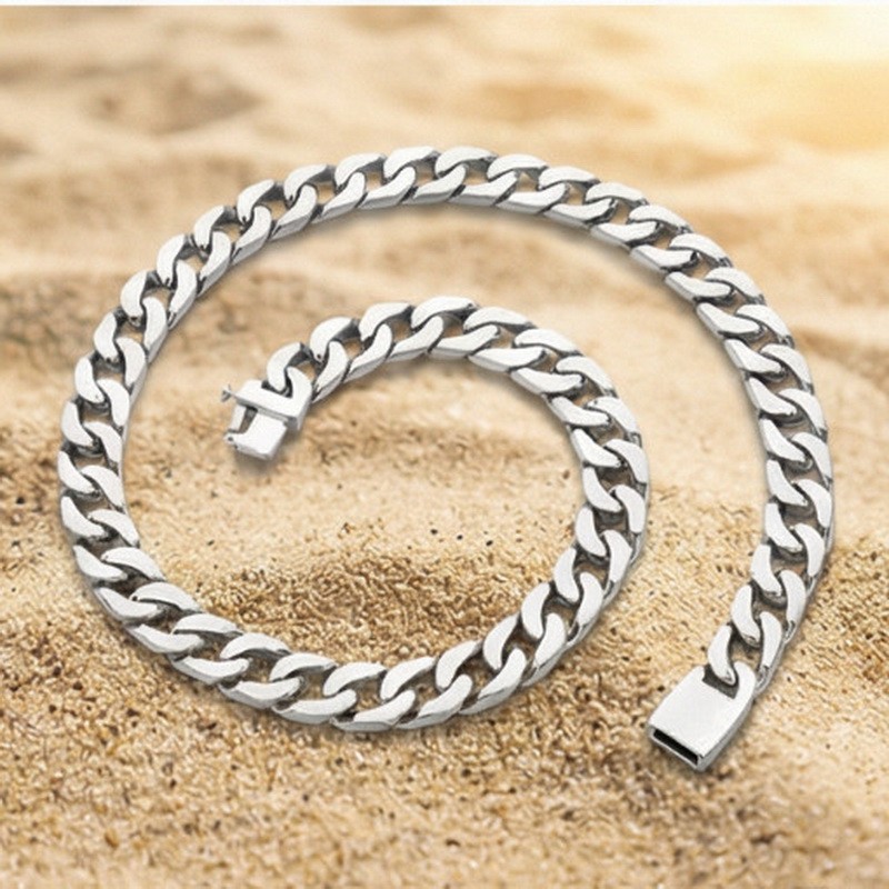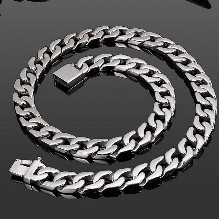 - Simple and atmospheric titanium steel men's snap fastener, polished and cast thick necklace