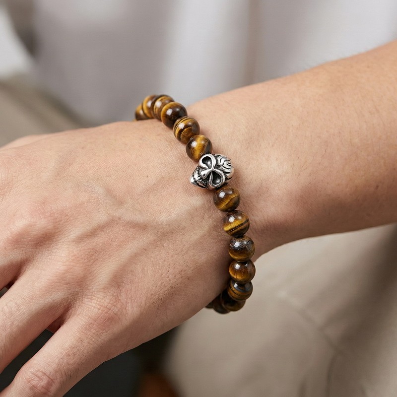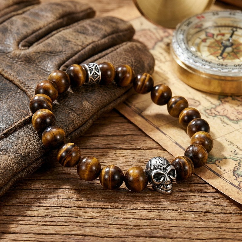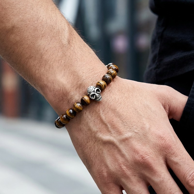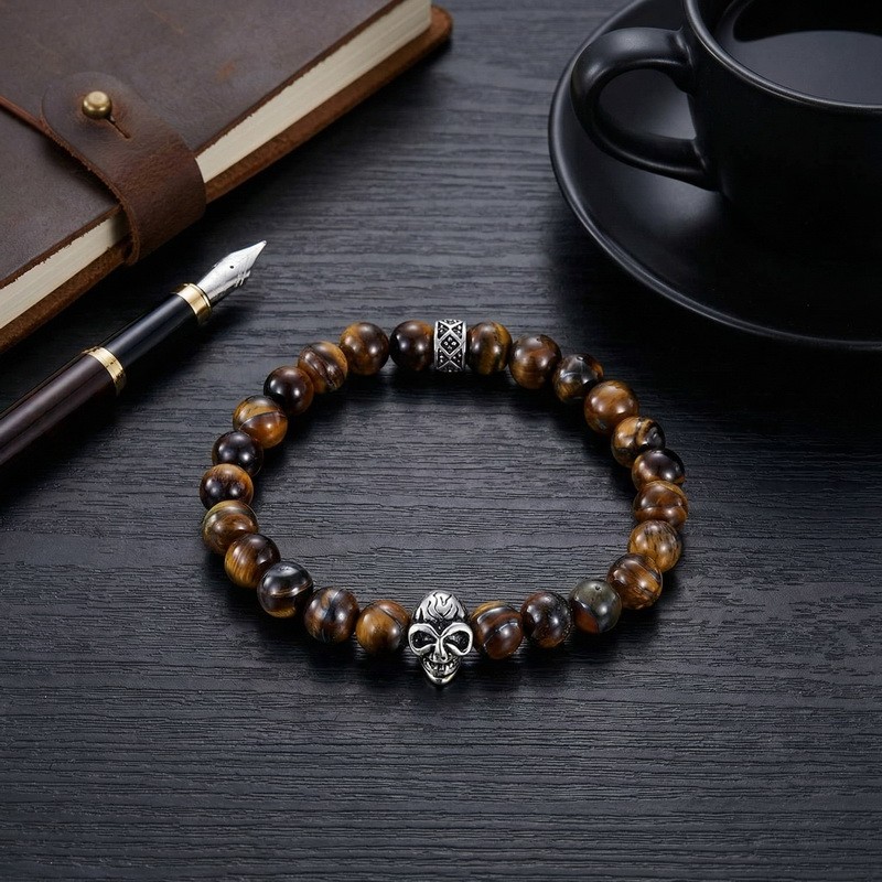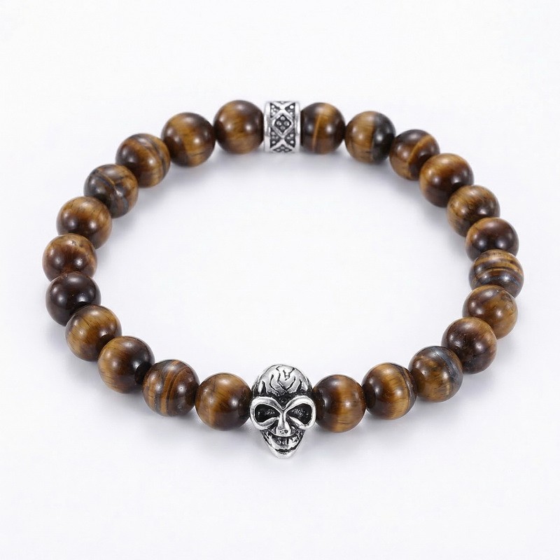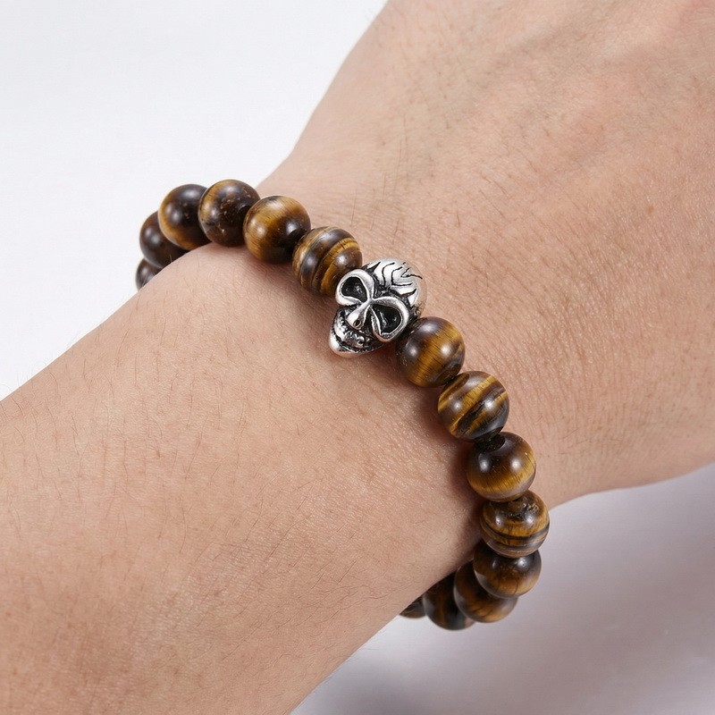 Men's stainless steel cast skull with bead braceletWholesale Price: