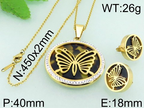 Stainless steel fashionable and simple 3mm long curved gold-plated box chain bracelet necklace two-piece setWholesale Price: