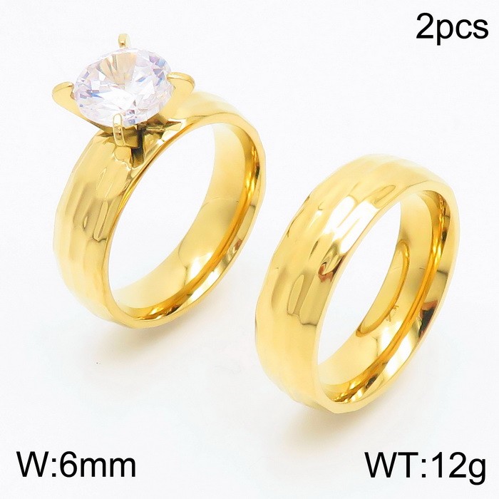 - Simple stainless steel striking texture zircon women's textured wedding Stone&Crystal Gold Plating Lover Ring