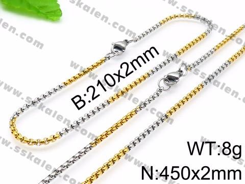 Gold-Plated Stainless Steel Cracked Cuban Links Jewelry Set with 500mm Necklace&200mm BraceletWholesale Price: