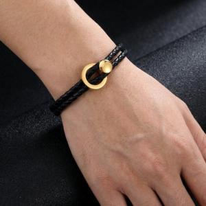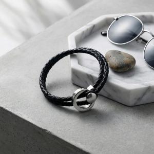 Stainless steel buckle paired with leather bracelet for fashionable jewelryWholesale Price: