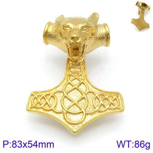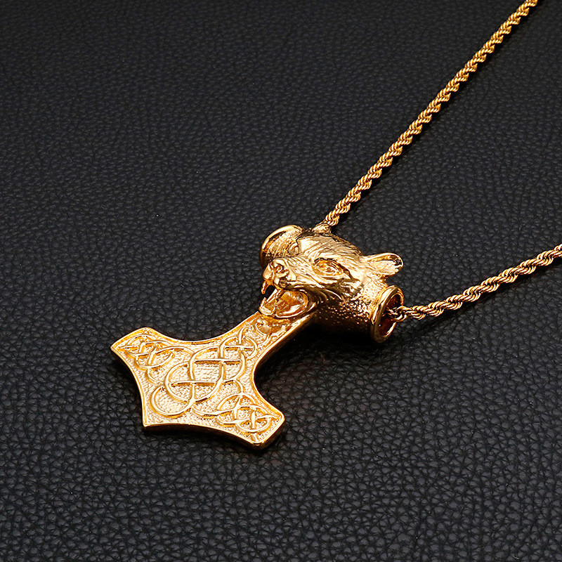- Stainless Steel Nordic Viking Wolf Head Mighty Retro Animal Men's Pendant Gold-plating Pendant