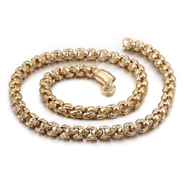 Gold Halloween Skull Polished Men's NecklaceWholesale Price: