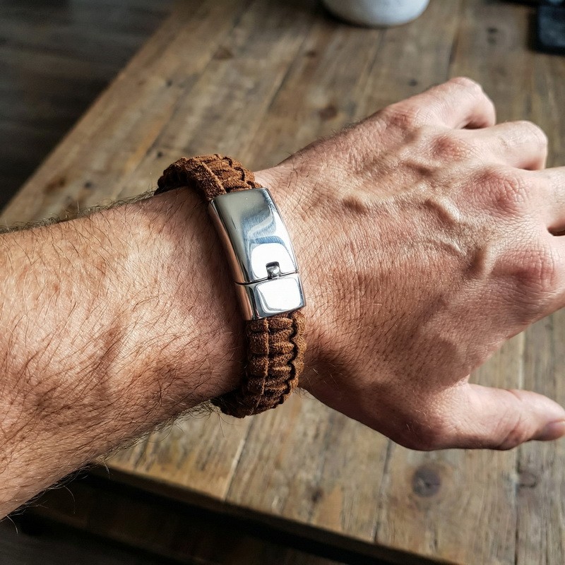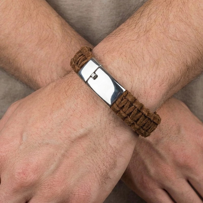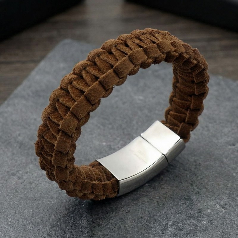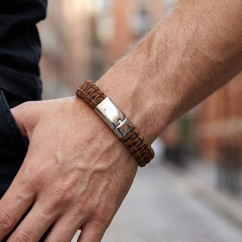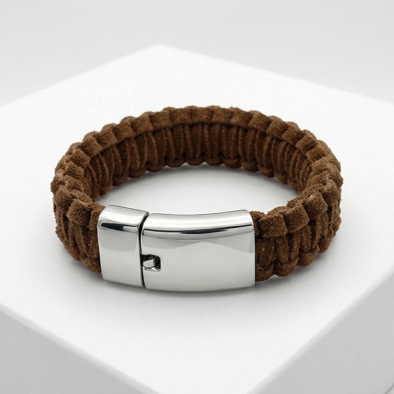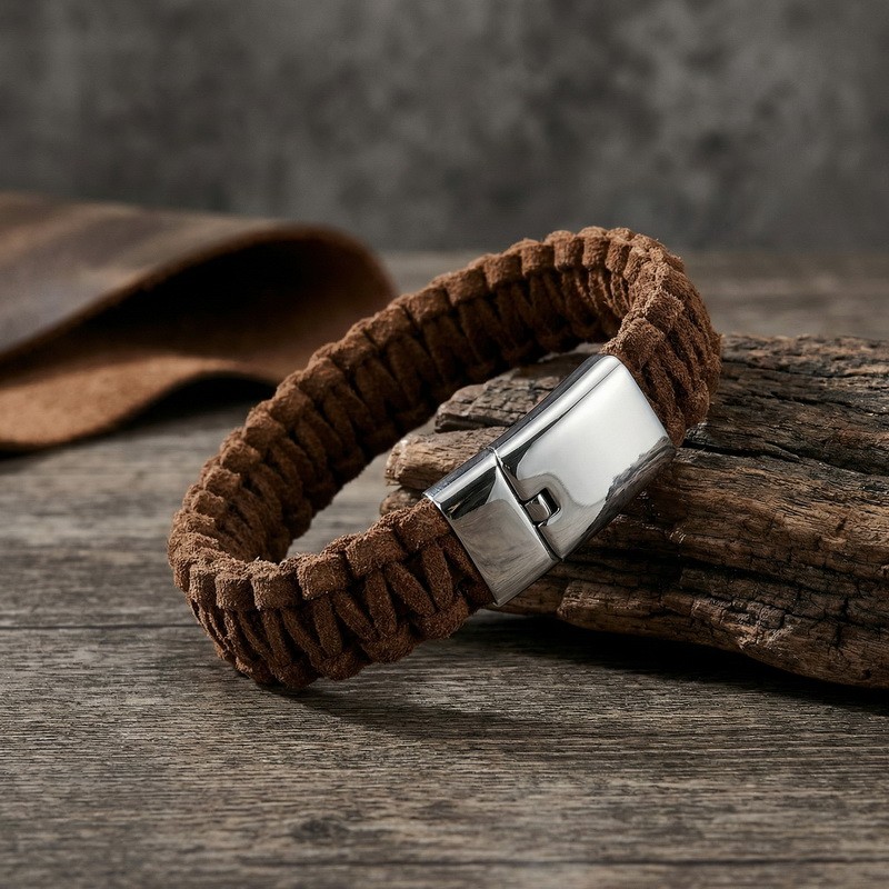 Stainless steel buckle paired with leather bracelet for fashionable jewelryWholesale Price: