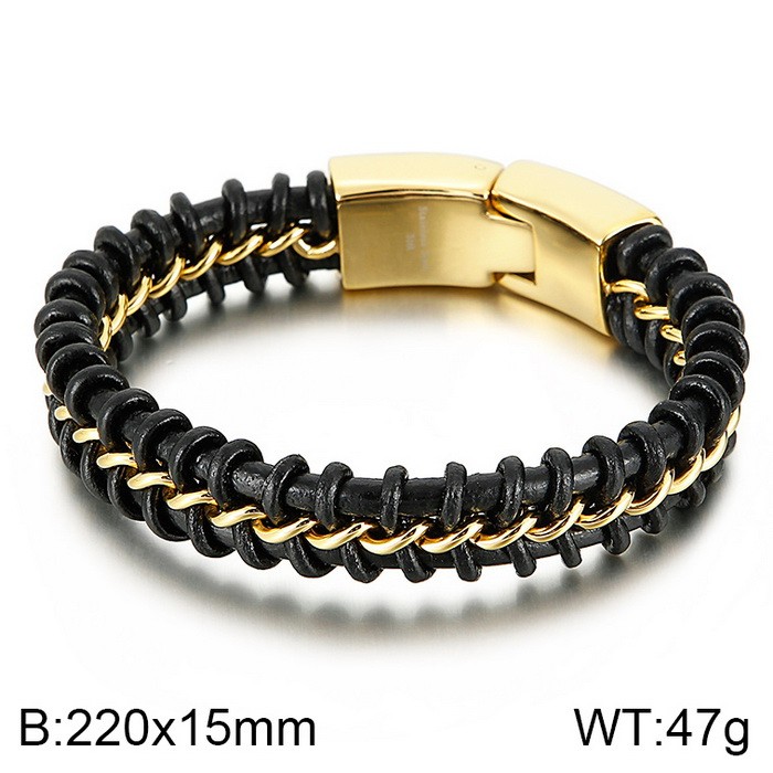 - Stainless Steel Leather Bracelet