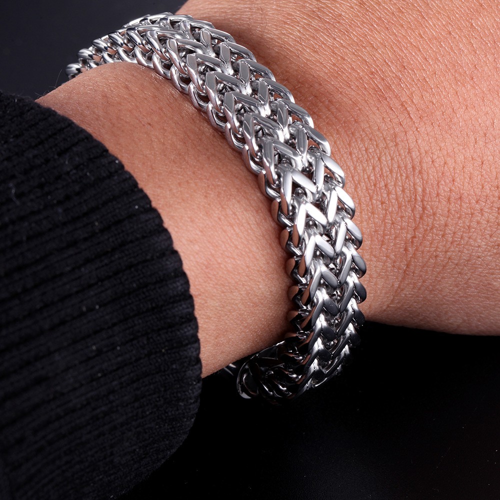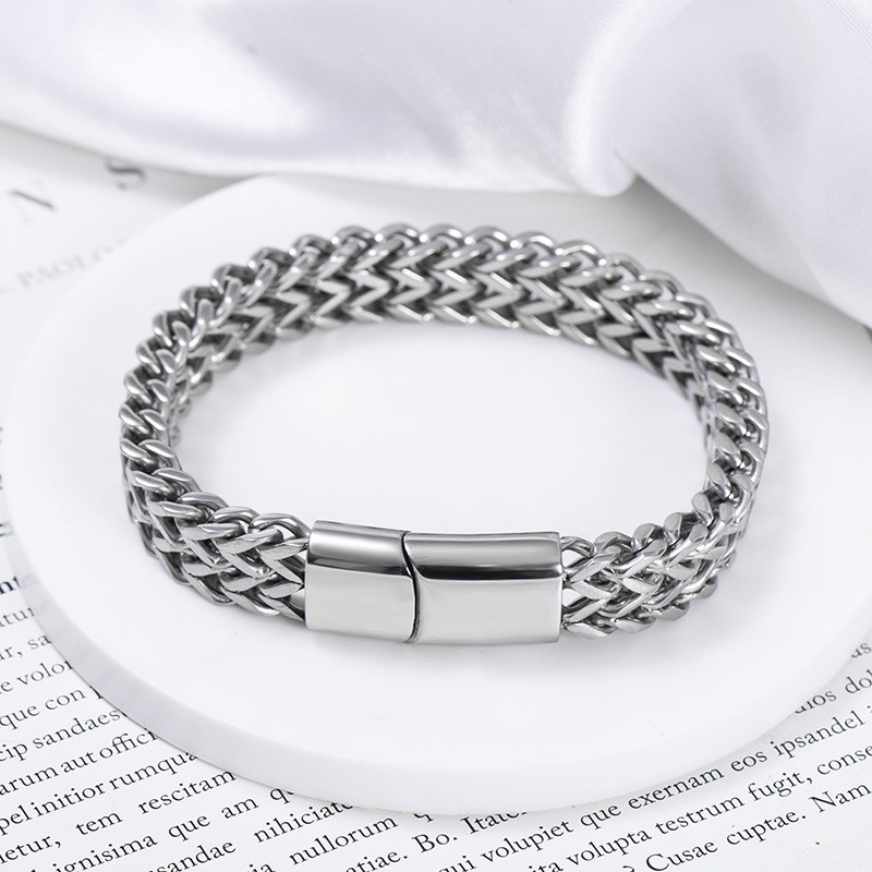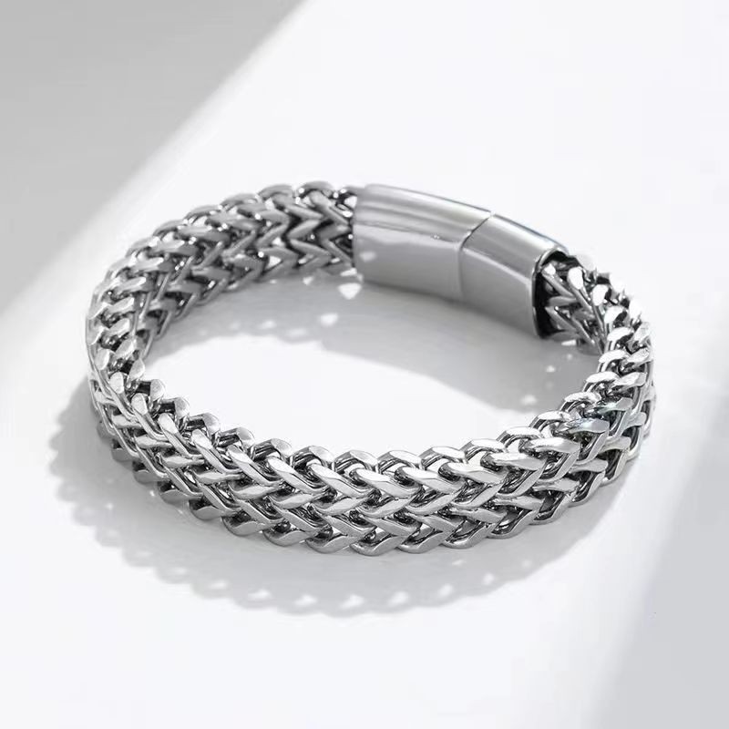 - Stainless Steel Simple and personalized woven double row front and back keel flat buckle Bracelet(Men)