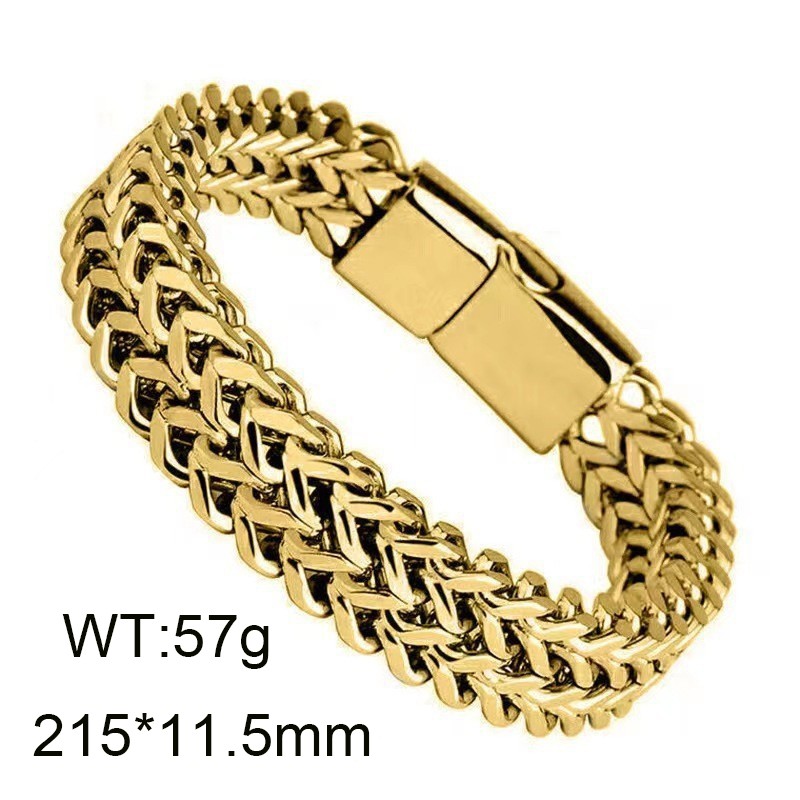 - Stainless Steel Simple and personalized woven double row front and back keel flat buckle Gold-plating Bracelet