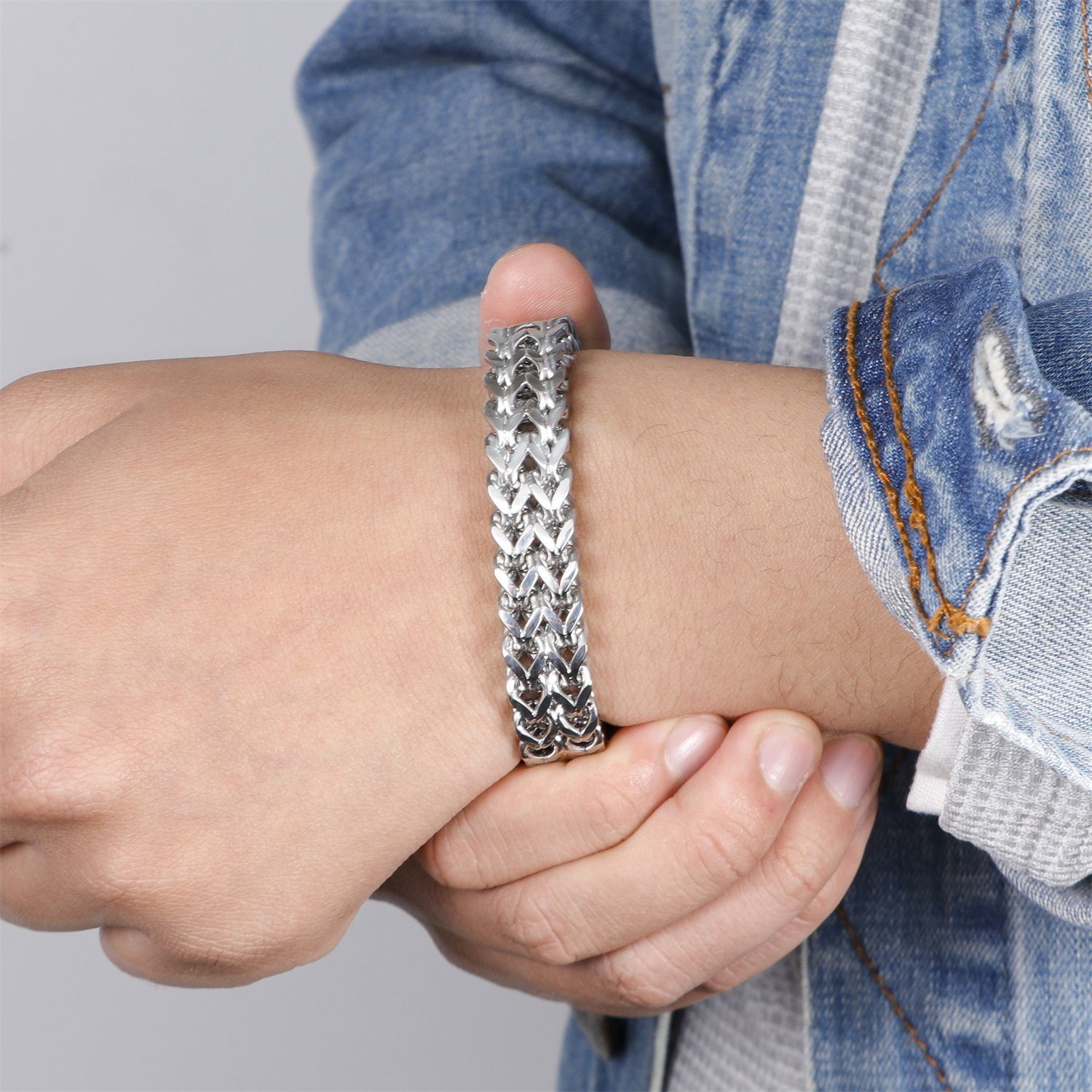 - Stainless Steel Simple and personalized woven double row front and back keel flat buckle Bracelet(Men)