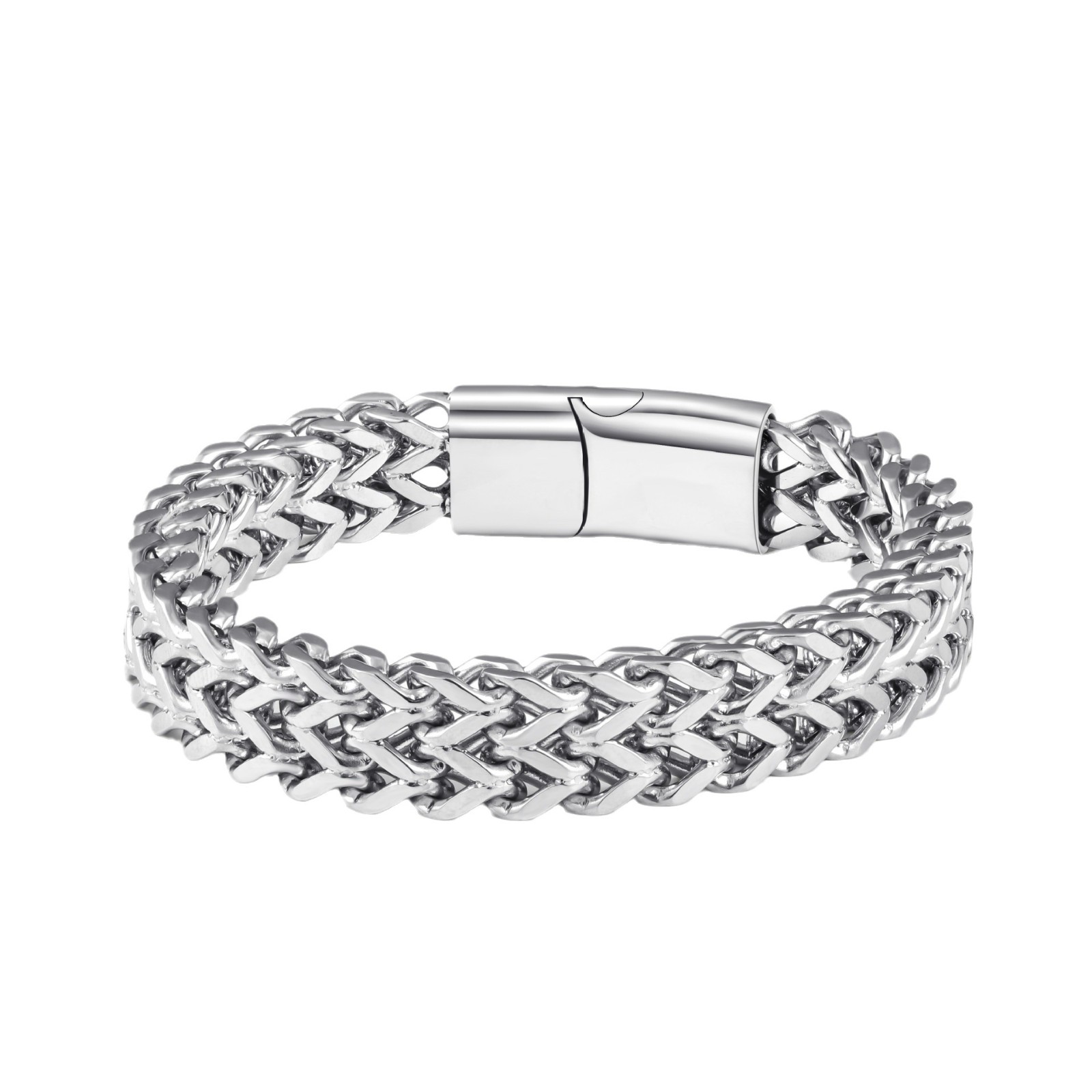 Stainless Steel Simple and personalized woven double row front and back keel flat buckle Bracelet(Men)