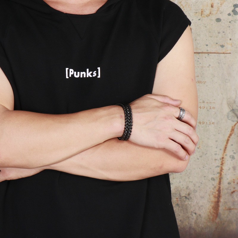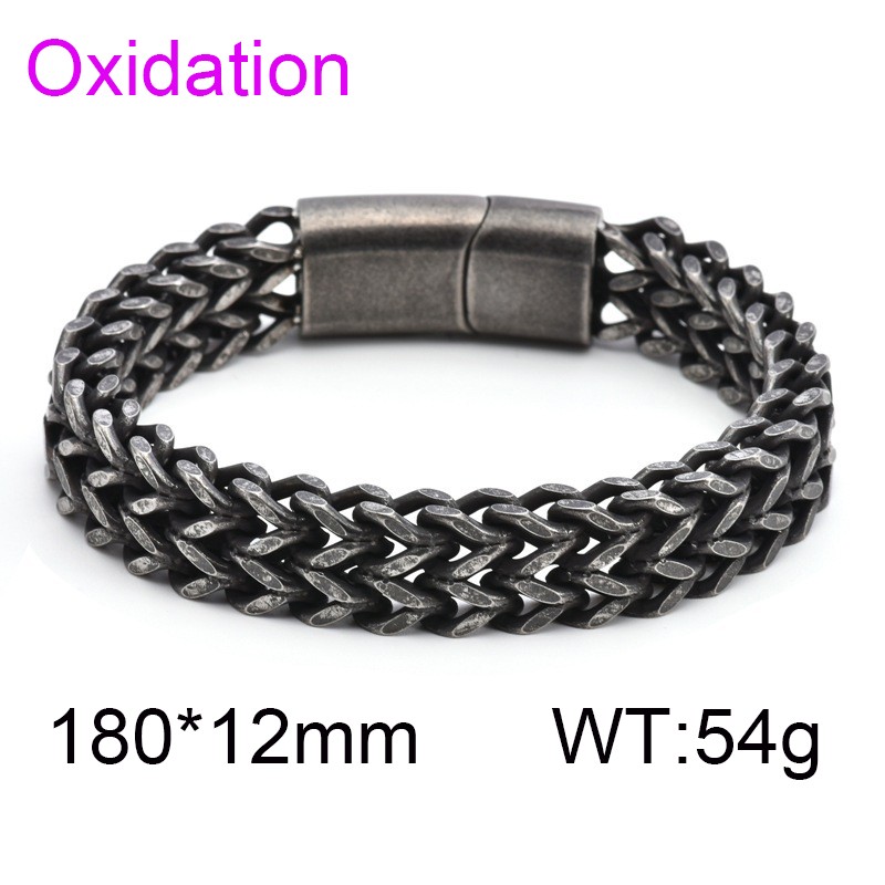 - Stainless Steel Simple and personalized woven double row front and back keel flat buckle oxidation Special Bracelet