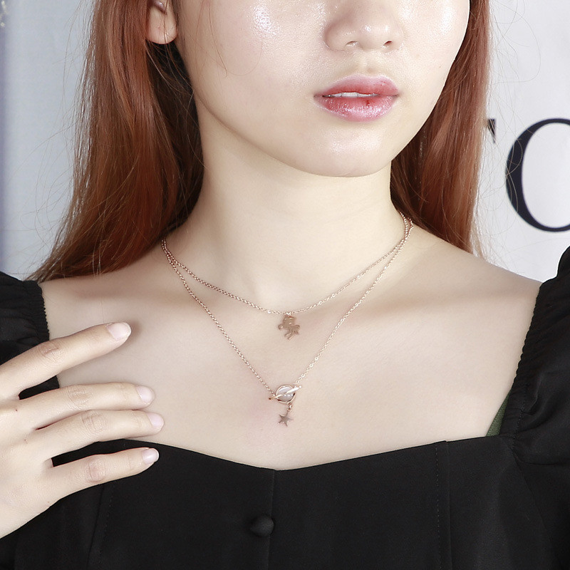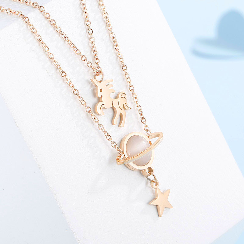 - Stainless steel unicorn gold-plated planet pendant star necklace Rose Gold-Plating Necklace