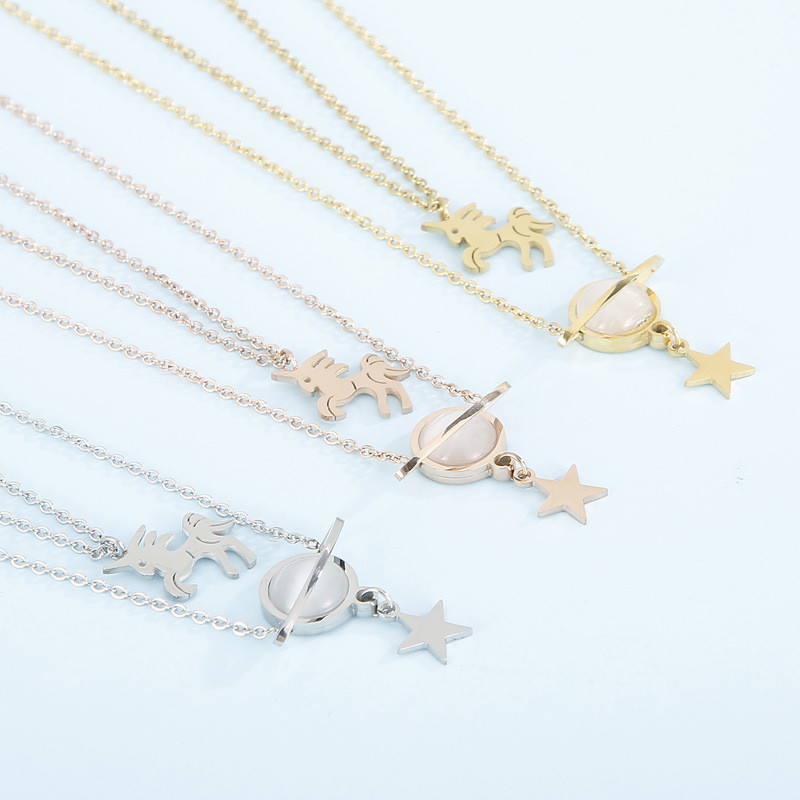 Stainless steel unicorn gold-plated planet pendant star necklace Rose Gold-Plating NecklaceWholesale Price: