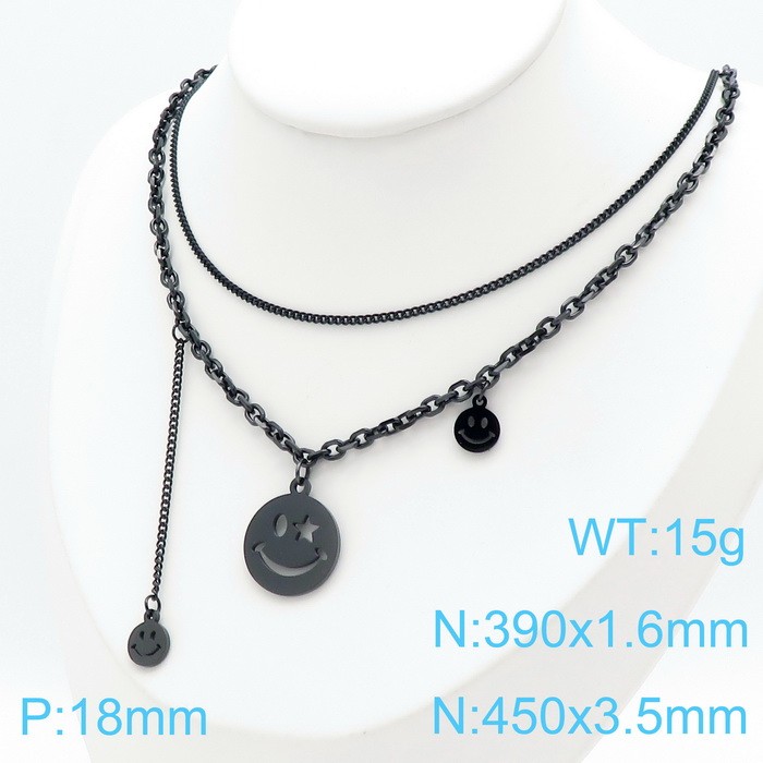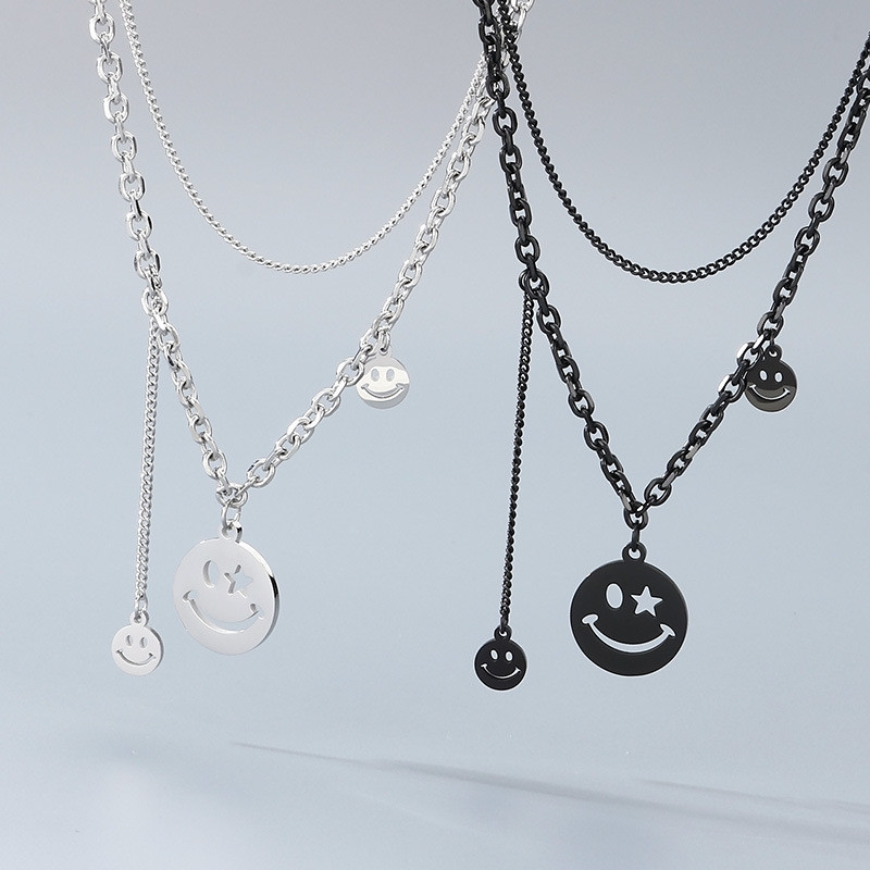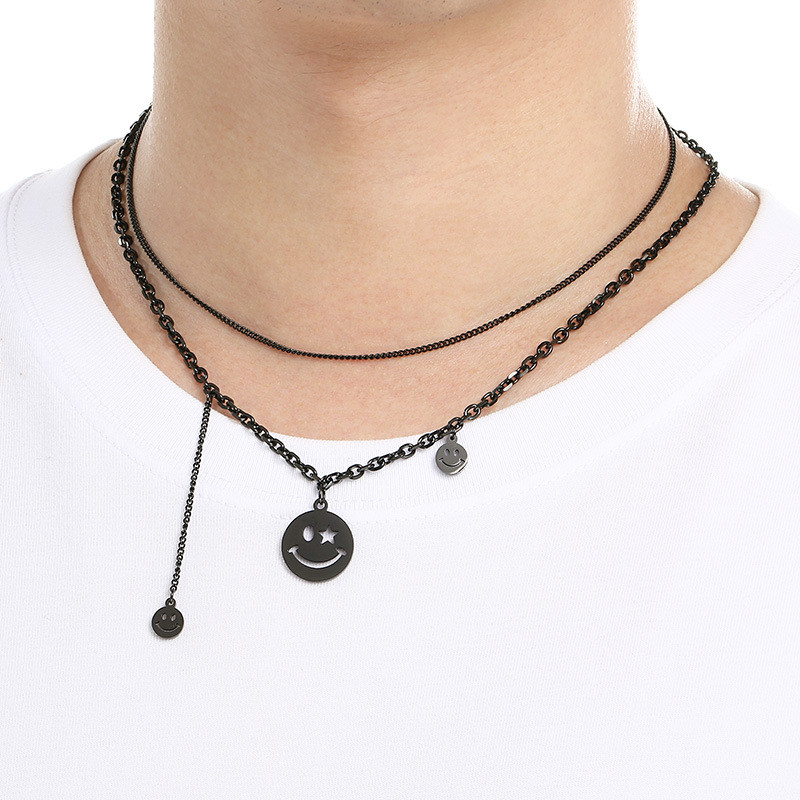 - Stainless Steel Stainless Steel Hip-hop smiley face necklace Black-plating Necklace
