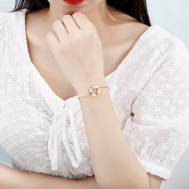 - Round pancake personalized popular Roman numeral bracelet with diamond inlaid hollow letters Rose Gold-plating Bracelet