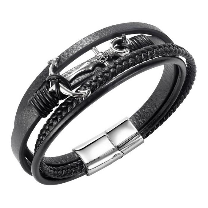 - Stainless Steel Leather Bracelet