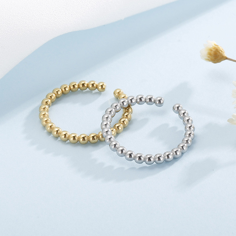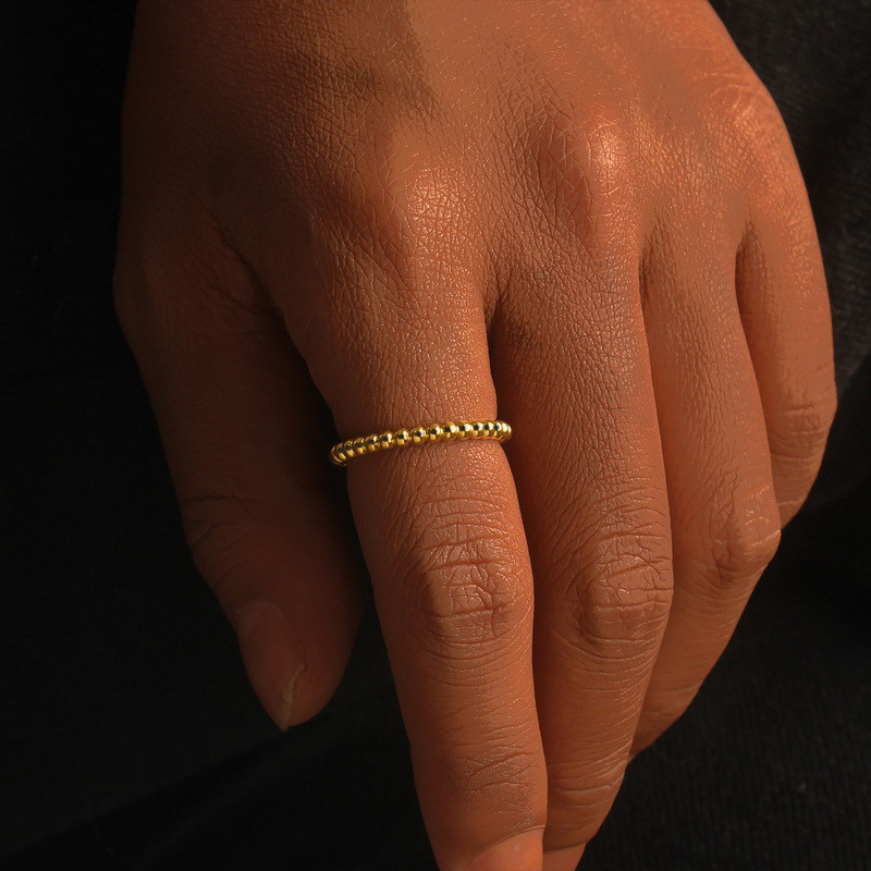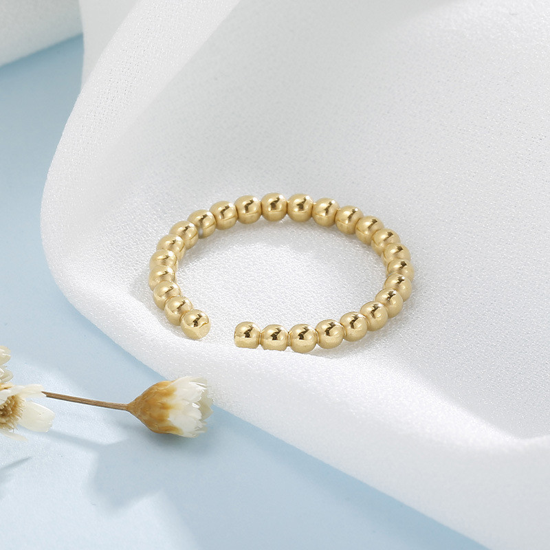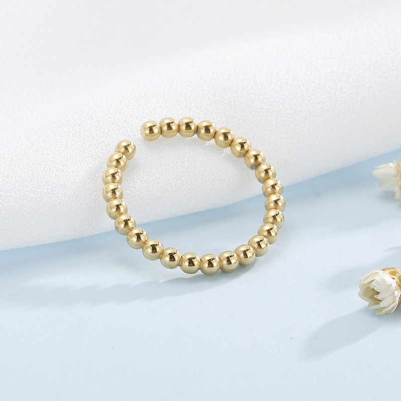 Stainless Steel Simple opening ins fashionable round bead water ripple Gold-plating RingWholesale Price: