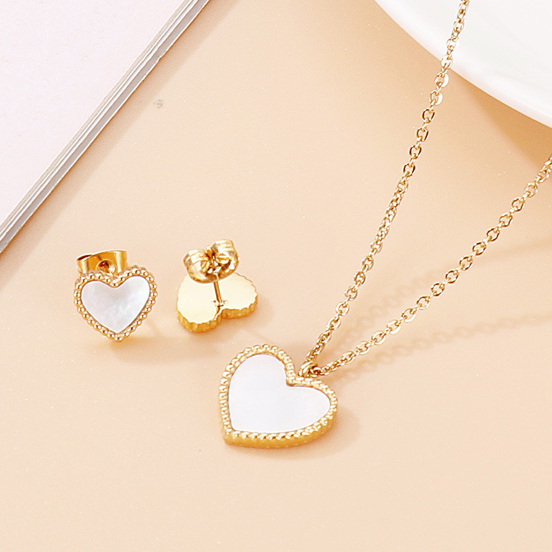 Temperament Mother Shell Love Necklace Earnail Clavicle Chain Two Piece Jewelry SetWholesale Price: