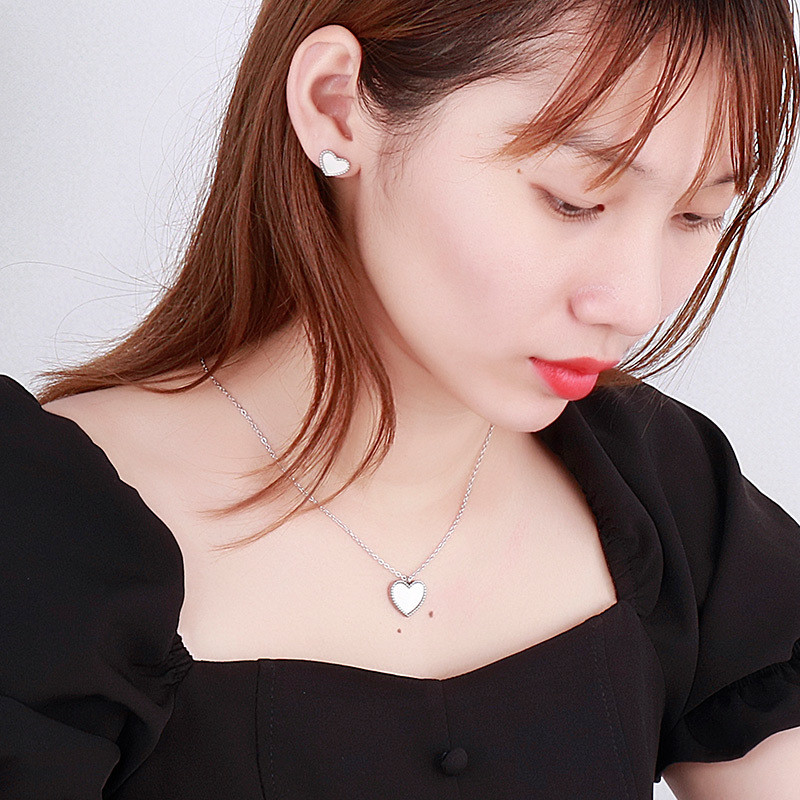Temperament Mother Shell Love Necklace Earnail Clavicle Chain Two Piece Jewelry Set