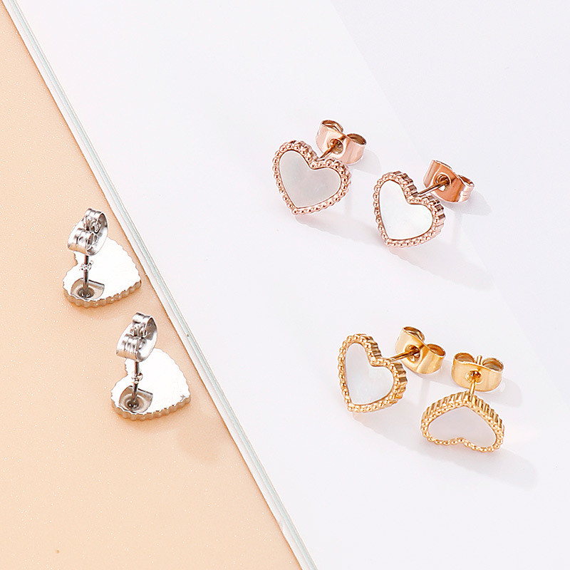 - Temperament Mother Shell Love Necklace Earnail Clavicle Chain Two Piece Jewelry Set