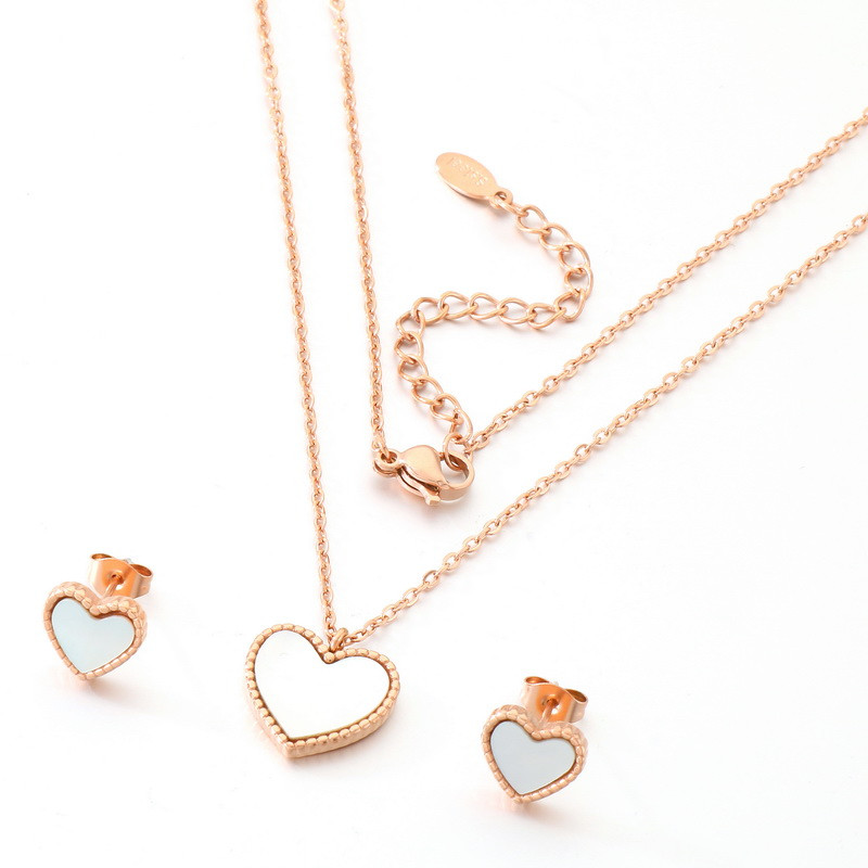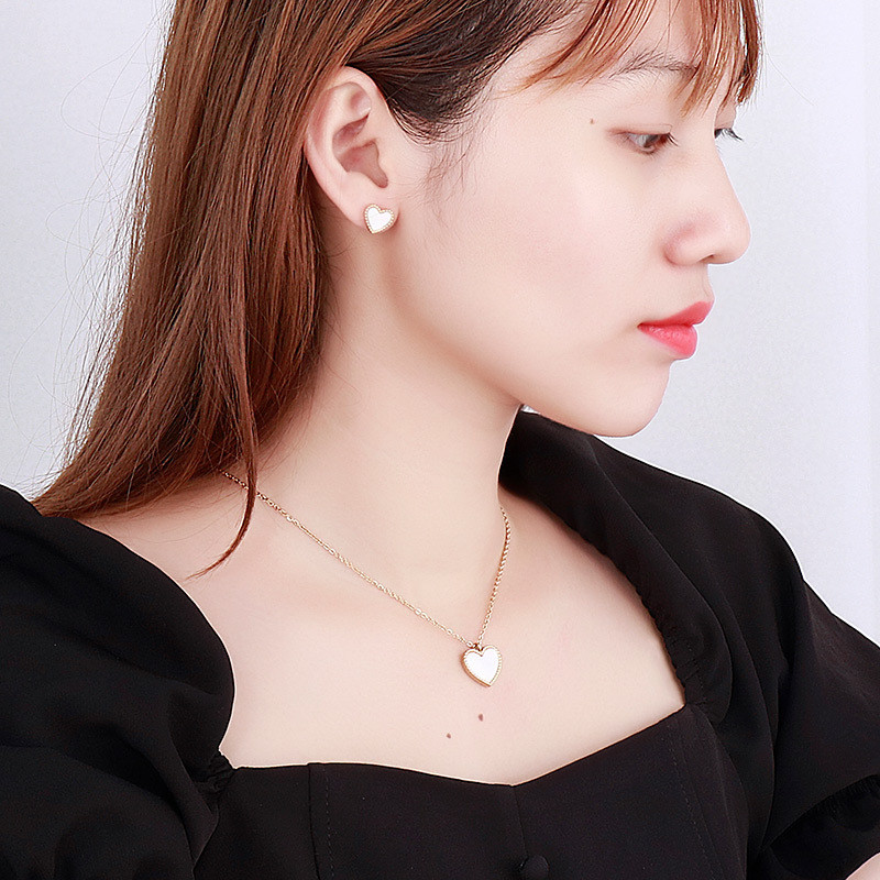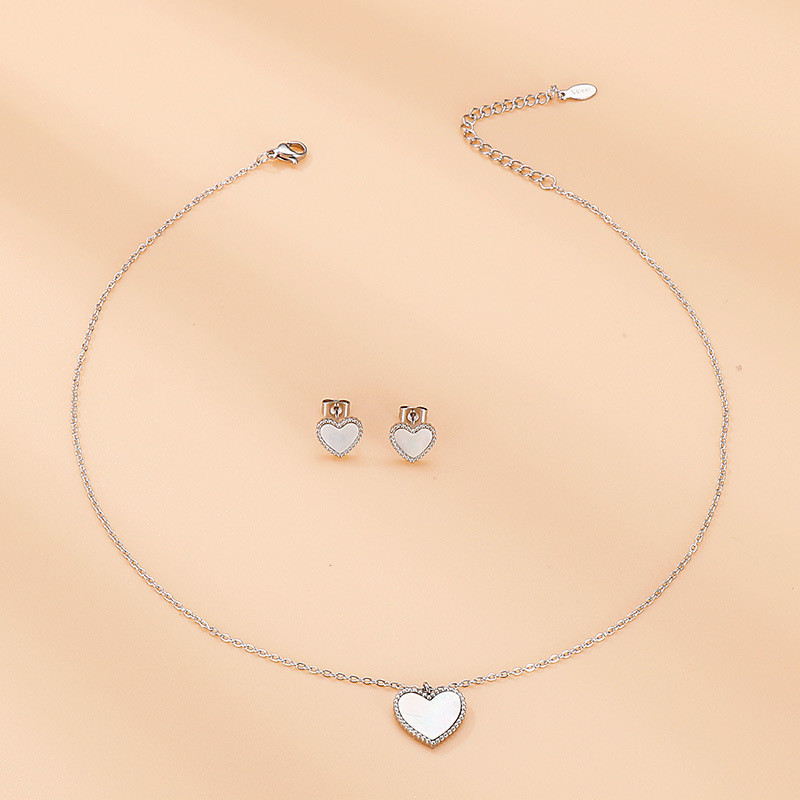Temperament Mother Shell Love Necklace Earnail Clavicle Chain Two Piece Jewelry SetWholesale Price: