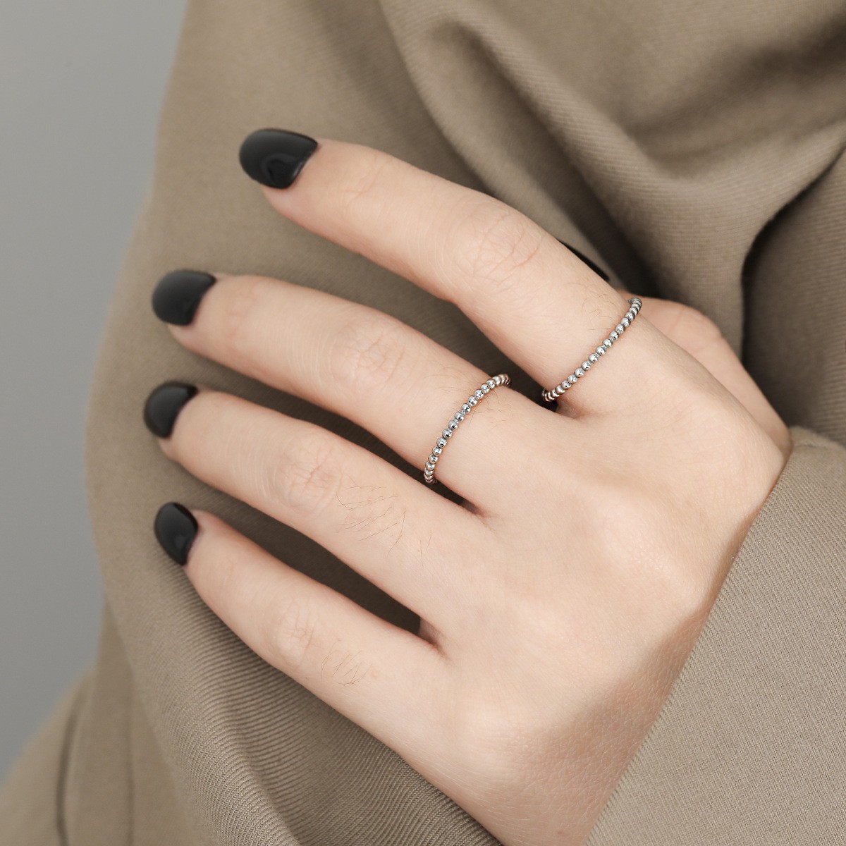 - Stainless Steel Minimalist Ins fashion round bead water ripple Special Ring
