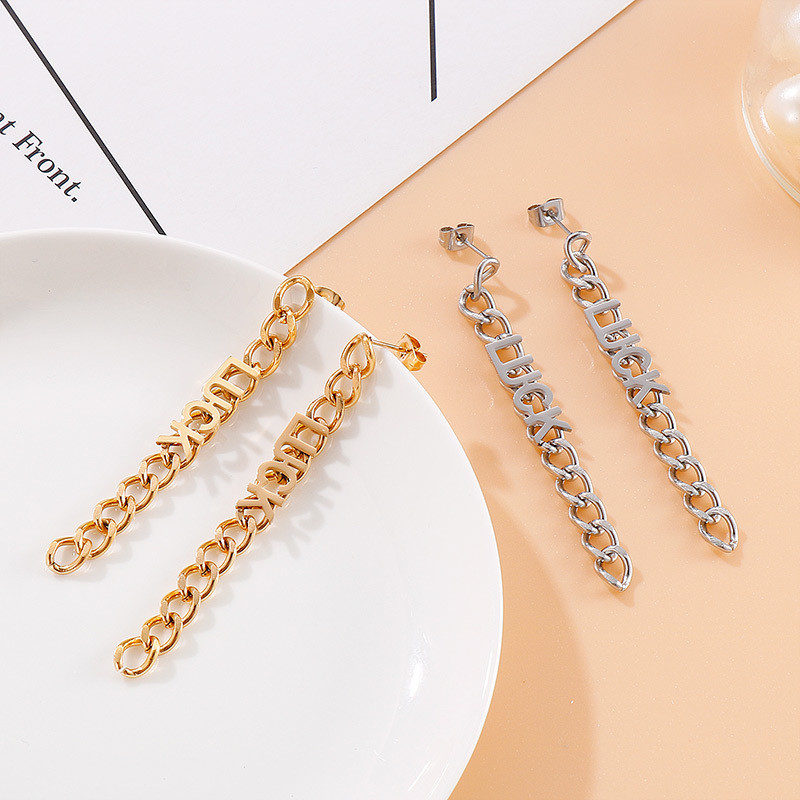 Steel Color chain long fringed Luck earringsWholesale Price: