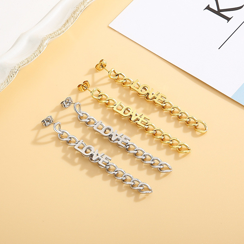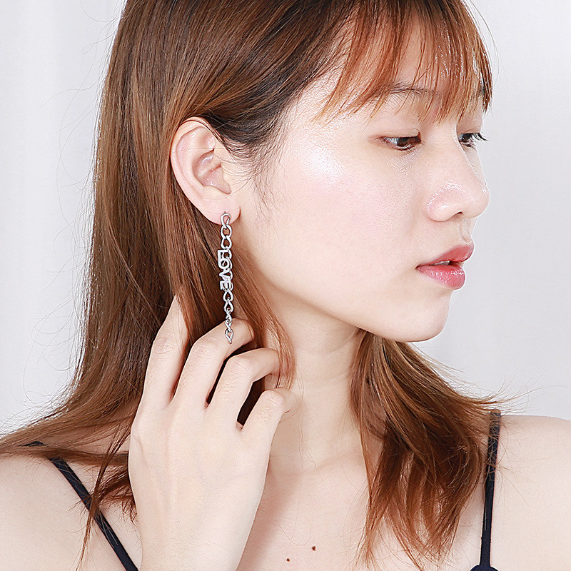 Steel Color chain long fringed Love Gold-Plating EarringWholesale Price: