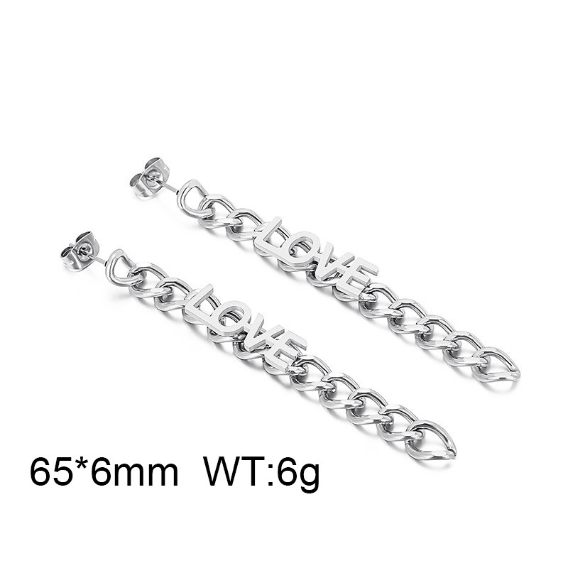 - Steel Color chain long fringed Love Gold-Plating Earring