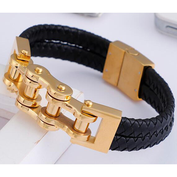 Gold leather locomotive magnet buckle braceletWholesale Price:
