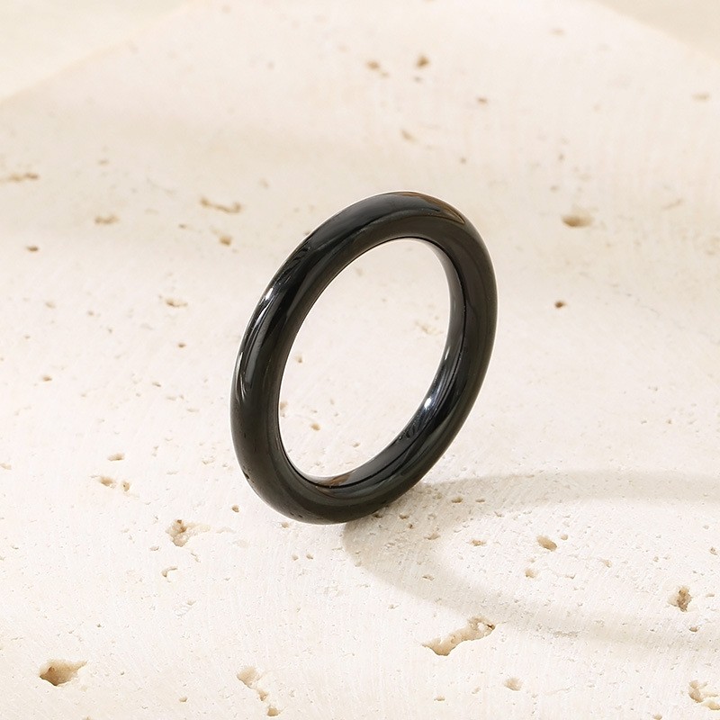 Stainless Steel Linear simplicity plain circle smooth surface Black-plating RingWholesale Price: