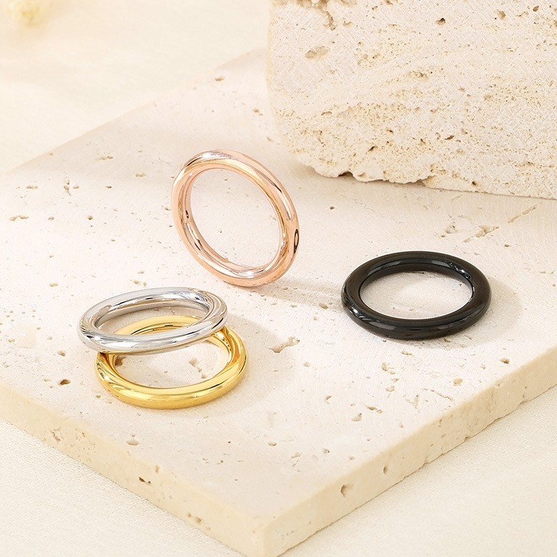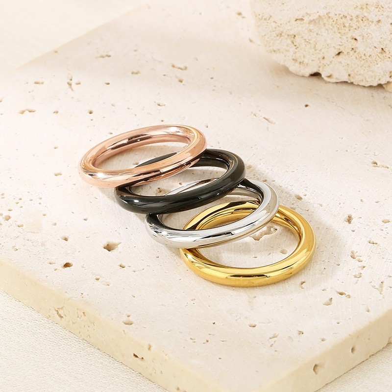 Stainless Steel Linear simplicity plain circle smooth surface Gold-plating RingWholesale Price: