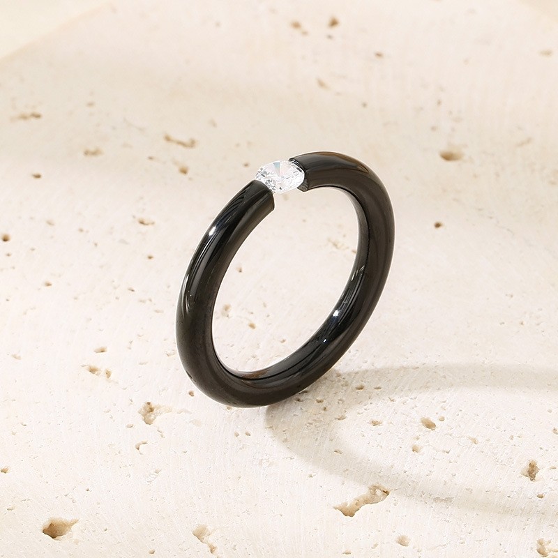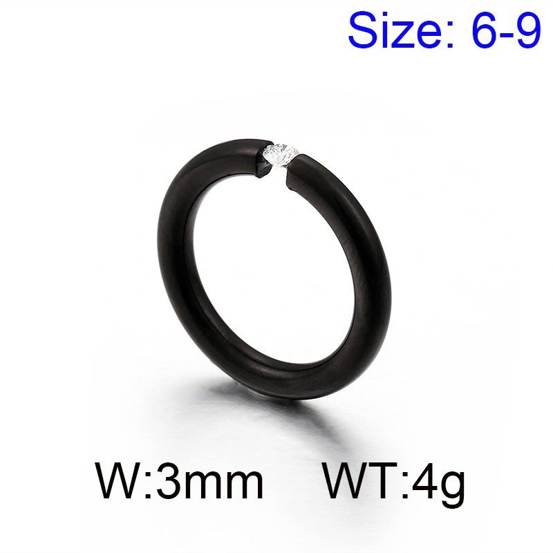 Stainless Steel black Linear simplicity plain circle smooth surface Stone&Crystal RingWholesale Price: